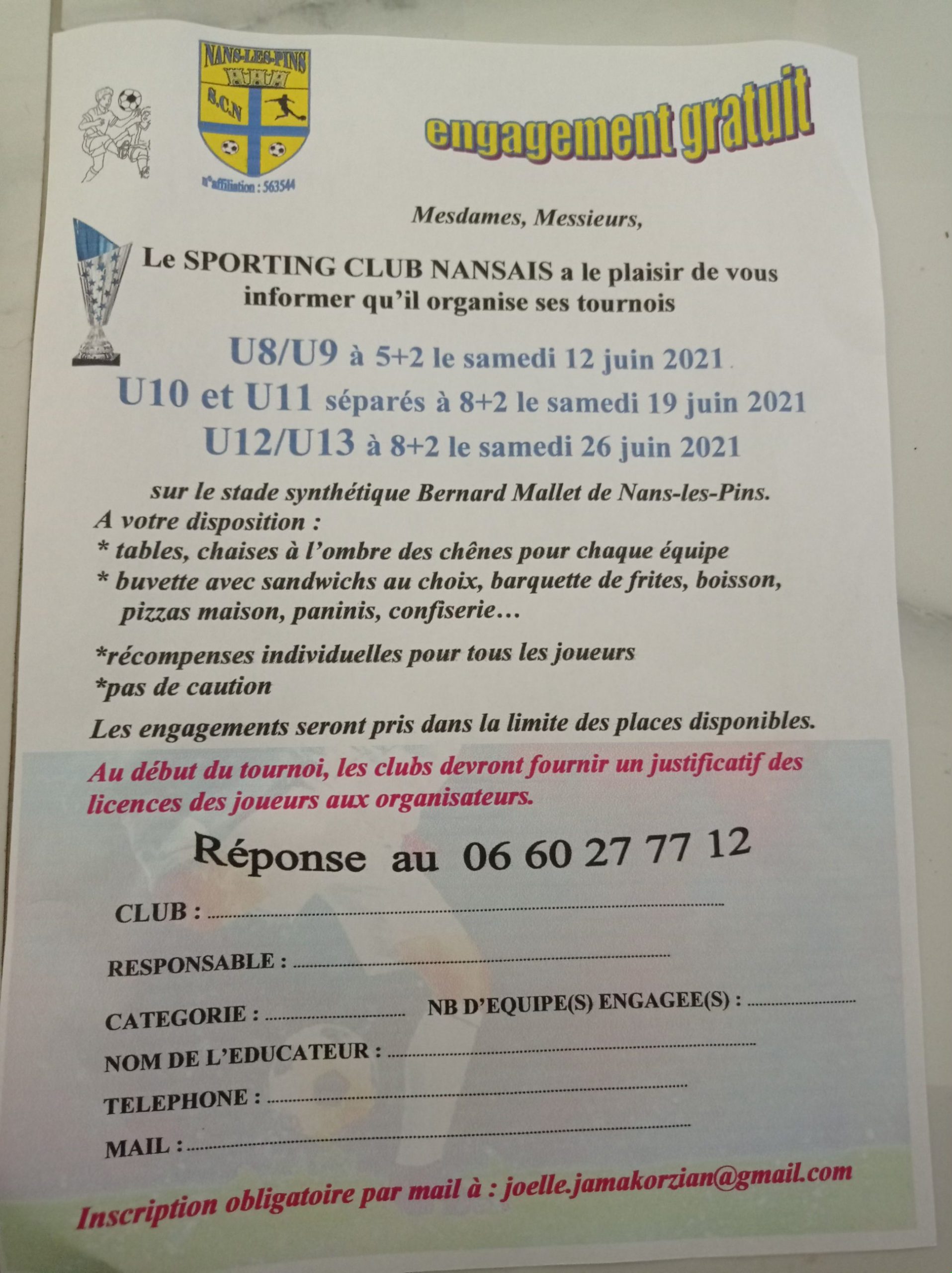 Le Sporting club Nansais à le plaisir de vous informer qu’il organise ses tournois