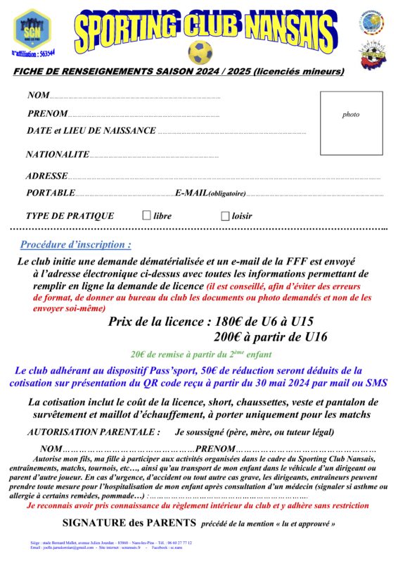 fiche de renseignements mineurs 2024-25 Publié 4 juin 2024 à 1810 × 2560 dans Les inscriptions pour la saison 2024-2025 sont ouvertes!!!!