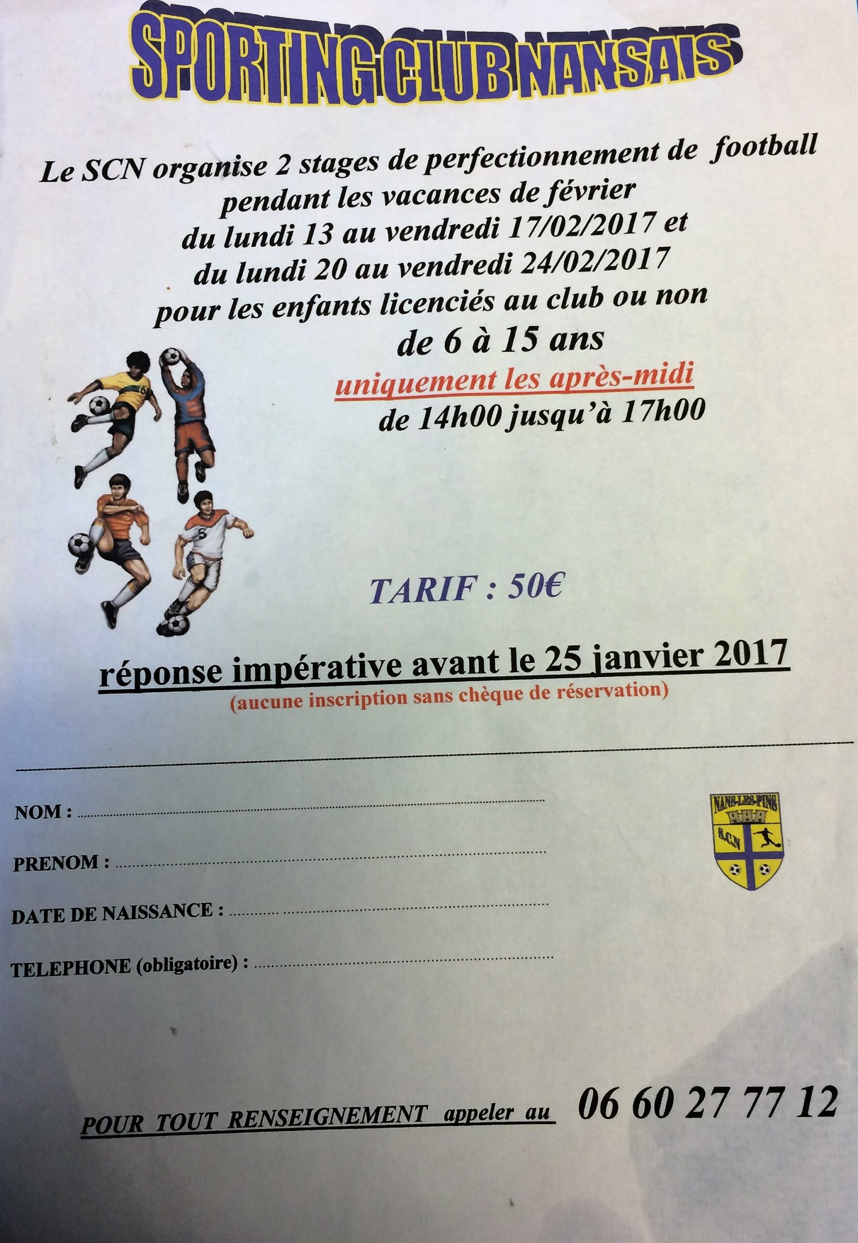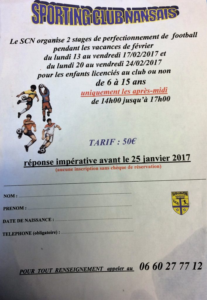 STAGE FOOT FEVRIER 2017