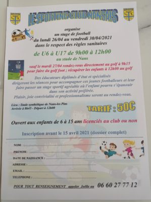 Du 26 au 30 avril le SCN organise un stage de perfectionnement.
